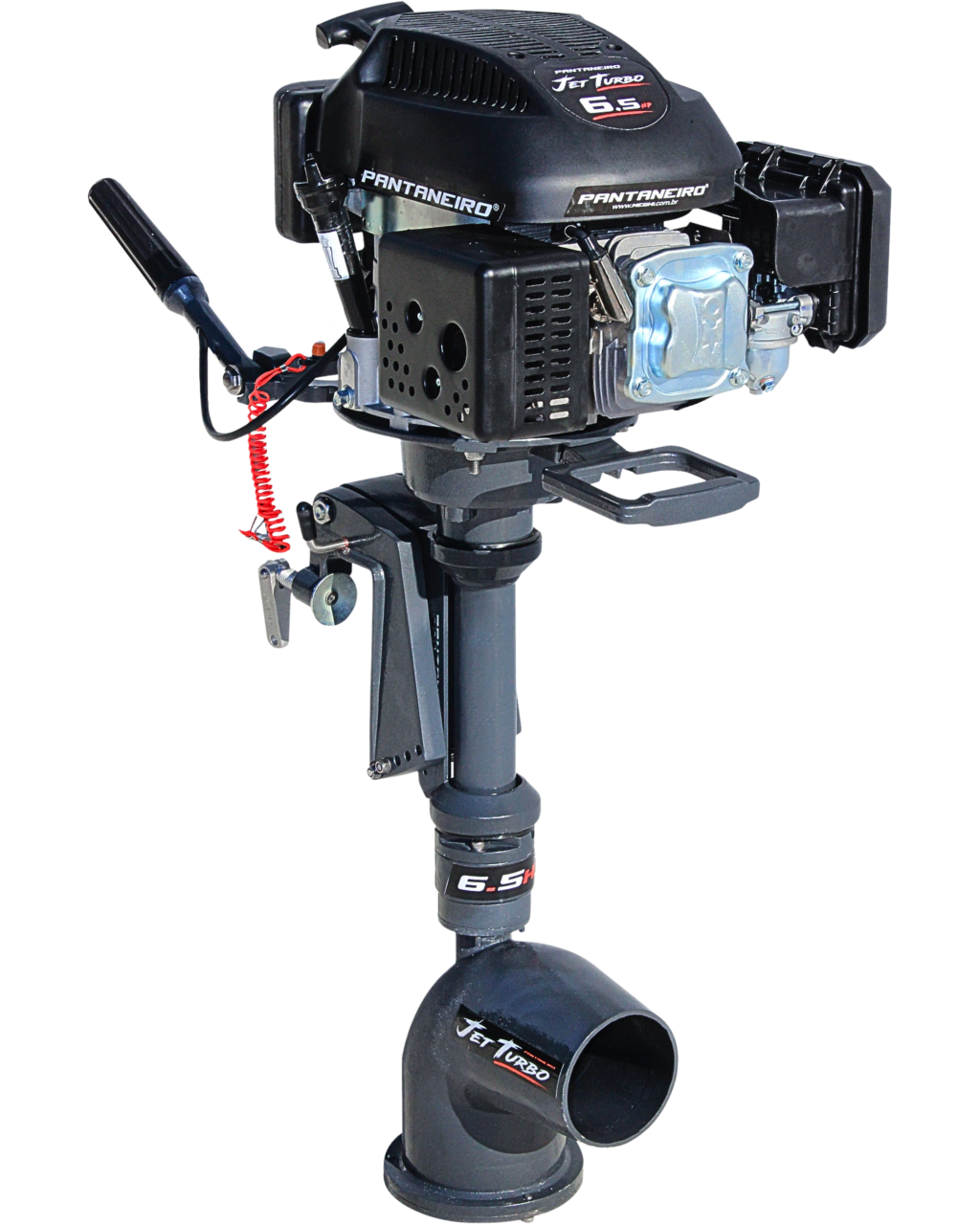O motor de popa Jet Turbo 6.5hp com embreagem + chave de segurança vem para somar as qualidades dos motores de popa Pantaneiro com a tecnologia usada nos motores leves. O primeiro motor de popa 6.5hp a usar propulsão a turbo, este produto é ideal para uso em locais com vegetações ou galhos, além de prover mais segurança e estabilidade na navegação.