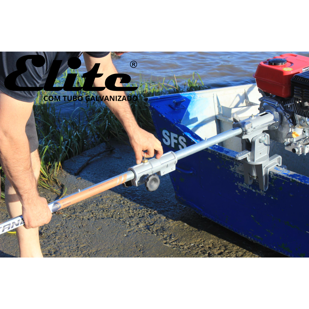 Chega de dor de cabeça com rabetas amadoras! A nova rabeta ELITE Pantaneiro é a maior tecnologia já desenvolvida para rabetas horizontais, foi desenvolvida para facilitar a navegação e oferecer uma longa vida útil. Rabeta ELITE é a mistura de INOVAÇÃO, QUALIDADE e SEGURANÇA. Além de ser 90% marinizada, oferece um sistema inovador de montagem em 3 pontos, possibilitando que se monte separadamente o cavalete no barco, em seguida se encaixa a parte superior do suporte (com o motor) e por fim o tunel da rabeta. DIFERENCIAL: ESSA RABETA GIRA 360° E POSSUI UMA TRAVA PARA FACILITAR O ARMAZENAMENTO NO BARCO QUANDO A EMBARCAÇÃO ESTÁ PARADA.
